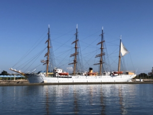 軽い朝食後、道の駅近くの新湊きっときと市場を見学、オープンしたばかりなのかお客様が疎らでした。次に海王丸パークに移動海王丸が係留されている公園を散策。 釣り人が沢山来ており小あじを釣って楽しんでいました。 湾内には新湊大橋が架かっておりエレベーターで昇って橋中にある散歩道を歩いて渡り散歩して来ました。 端から日本海や立山連峰、能登半島が一望出来て最高でした。👍👍 (エレベーターも通行も無料)