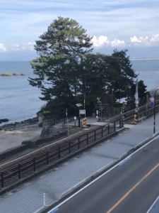 昼食後雨晴海岸で義経と同様に雨宿りをして帰りました。源義経が奥州へ落ち延びる途中、にわか雨が晴れるのを待ったという岩、 それでこの地名が「雨晴」となったと言われています。 氷見漁港場外市場氷見番屋街に立ち寄り名物の鱒ずし購入。かなり立派な施設でした。👍👍