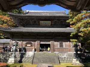 福井駅にて実物大の恐竜を見たのち曹洞宗の大本山永平寺へ 大本山永平寺は1244年、道元禅師が45歳の時、波多野義重公の願いによって越前に大仏寺を建立し、2年後に今の永平寺と改められたことに始まるそうです。 昼食後1時間かけてお寺内部を見学、修行僧が厳しい作法に従って禅の修行をしているとの事でした。