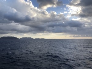 出港時に突然現れた虹、これからの旅を祝福しているかのようでした。