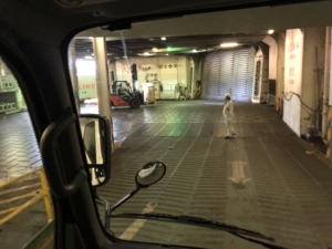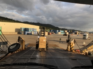 本部港下船瞬間をバシャと一枚撮りました。 これから春まで数カ月間「うちなーんちゅ」になります