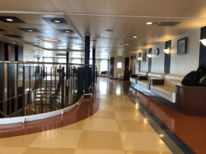 今日乗船する船はマルエーフェリーの「フェリーあけぼの」総トン数8,083トン、全長145.0m、全幅24.0m、速力21.0ノット、就航年月日は平成20年7月とちょっと古めのフェリーでした。 鹿児島港を出港して名瀬(奄美大島)→亀徳(徳之島)→和泊(沖永良部島)→与論(与論島)→本部(沖縄)で下船しました。