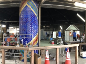 まず最初の観光地は琉球ガラス村、土曜日とあってイベント広場で屋台やアウトレット品などの販売をしていました。 琉球ガラス村は沖縄本島の最南部、糸満市にある県内最大の手作りガラス工房。 入館料は無料ですが素晴らしい作品の展示品や名工達の作品が多く有りました。