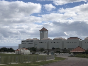 次に沖縄空手の発祥の地「沖縄空手会館」道場や鍛錬室のほか展示施設もあり、資料室では一般の方に向けたコンテンツから専門的な情報まで幅広く展示していました。 また東京オリンピックで金メダルの『喜友名諒選手金メダルおめでとう」の垂れ幕が有りました。 その後隣接の豊見城グスク跡地を散策。