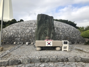 次にひめゆりの塔 ひめゆりの塔は沖縄戦で看護要員として動員され、240人中136人が亡くなった「ひめゆり学徒隊」を祀った慰霊塔。ひめゆり平和祈念資料館も併設され戦争の悲惨さと平和の大切さを教えてくれました。