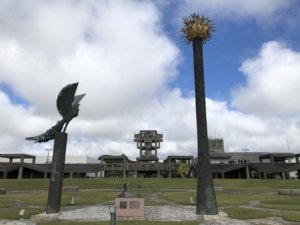 今日はクリスマスイブ、仙台に居た頃のクリスマスとは大分環境や気候が違いクリスマスと言うう感覚が全くありませ~~ん。 日中の散歩スタイルは半ズボンに半袖のティーシャツ1枚で歩いて来ました。 周りを見るとしっかり冬スタイルの沖縄人・・・が 何か場違いの様な気がしました。 でも平気です・・! 何故なら誰も知らないから(笑) 午前中はタピック県総ひやごんスタジアム(沖縄総合運動公園)を散策しました。 施設命名権によってタビックけんそうひやんごんスタジアムの呼称を用いているそうです。 1987年第42回国民体育大会の開催に合わせて建設され、メイン会場として使用され、その後全国高等学校総合体育大会やサッカー、ラグビーの試合に利用されたそうでとても大きな施設でした。 また公園内にはオートキャンプ場や子供たちの遊び場・プールなどの施設等・・・ どの位のお金を注ぎ込んだのだろうか?と思いながら散策させて頂きました。 沖縄には各市町村にこの程度の公園が沢山有り、道路を走行中に数キロおきに有り良く管理されていました。 しかしながら管理が厳しく時間になると公園から強制的に締め出され、我々キャンピングカー族には車中泊できない事が非常に残念でした。 また管理されているビーチも同じで宿泊場所を探すのに大変なストレスでした。