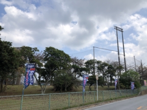 その後旧飛行場跡に建てられたパークゴルフ場、文化センター、読谷村役場を見学。 沖縄の役所や公共施設は何処に行っても素晴らしいです。 役場に隣接している球場では中日ドラゴンズの春季キャンプをしていましたのでちょっと覗いてみました。