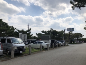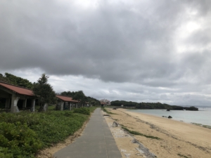 本日も雨、嘉手納基地を横目に・・・!👀👀👀 以前滞在した泊城公園へ移動 クリスマスの季節に宿泊し天候も良かったのでその時は大変感動しました。今回は天候も悪く感動が少し薄れてしまいましたがそれでもビーチは奇麗でした。 この泊城公園の駐車場には約50台ほど駐車でき奇麗なトイレも有ります。 他の公園の様に閉門時間の制限が無く車中泊もできました。 ビーチ内にはレストランやカフェなども有り、またビーチの中間には貸しロッカー(500円)やシャワー(200円)も有りました。 少し残念な事が周囲に牛小屋があり風向きによっては田舎の香水の匂いがしました。