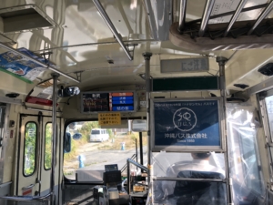 乗車した路線バスは約40年前の歴史あるレトロなバスでした。