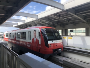 那覇市内から空港までのモノレール     新型コロナが増えているのにピーチの搭乗手続きカウンター前は混雑していました。😰😰😰