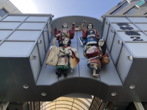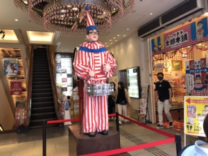 吉本新喜劇の「なんば花月」付近はたこ焼きや串やき串カツ、ラーメンなどが楽しめる「くいだおれの街」、懐かしいくいだおれ太郎の人形も有りました。