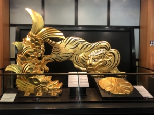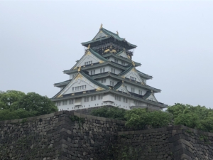 大雨の大阪城と天守閣内 大阪城天守閣は豊臣秀吉によって築城された大阪城の中心にそびえる天守閣の内部は歴史資料館となっており、展望台からは大阪の東西南北を一望でき年間250万人以上の来観客が来るとの事でした。