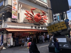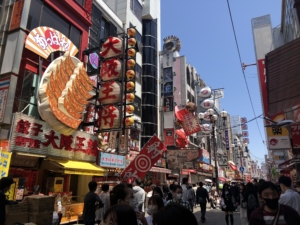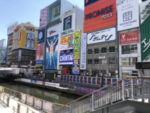 長堀通りの南側から宗右衛門通りまで南北に約580m続くミナミ随一の繫華街・グリコやかに道楽の看板がある道頓堀
