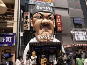 吉本新喜劇の「なんば花月」付近はたこ焼きや串やき串カツ、ラーメンなどが楽しめる「くいだおれの街」、懐かしいくいだおれ太郎の人形も有りました。