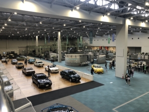 周りの騒音で目覚め再度寝ることもできなかったので早朝5時に名古屋向け出発 長嶋ICを降りて道の駅「立田ふれあいの里」にて朝食と休憩、国道155号線と県道79号線を利用してトヨタグループ発祥の地に残された赤レンガ造りの工場を産業遺産として保存、活用した博物館であるトヨタ産業技術記念館へ  館内は「繊維機械館」「自動車館」からなり、グループが携わってきた繊維機械と自動車を中心とする産業技術の変貌を本物の機械の動態展示やオペレーターによって分かり易く紹介され智ました。またミュージアムショップやレストラン、カフェ、図書館もあり一日楽しめる場所でした。 私達は次の予定があったのでさらっと見学して再度見ることして名古屋城に向かいました。 近いと思って徒歩で行きましたが暑いのと約40分程行程の距離でみんなに不評でした。