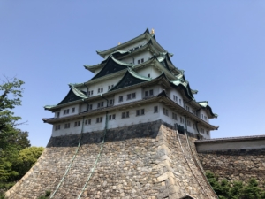 名古屋城天守閣と本丸御殿(将軍専用の宿館)・・・ゴールデンウイーク中とあって見学待ち時間に4~50分かかるとの事で諦めました。