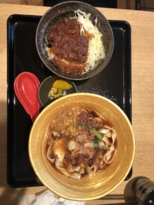 昼食に食べた四代目一八の「きしめんと味噌カツ」 味はまあまあかな⁉😅😅😅