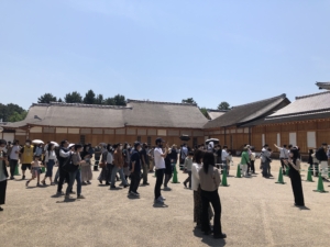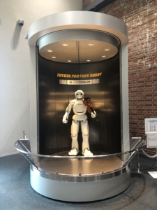 周りの騒音で目覚め再度寝ることもできなかったので早朝5時に名古屋向け出発 長嶋ICを降りて道の駅「立田ふれあいの里」にて朝食と休憩、国道155号線と県道79号線を利用してトヨタグループ発祥の地に残された赤レンガ造りの工場を産業遺産として保存、活用した博物館であるトヨタ産業技術記念館へ  館内は「繊維機械館」「自動車館」からなり、グループが携わってきた繊維機械と自動車を中心とする産業技術の変貌を本物の機械の動態展示やオペレーターによって分かり易く紹介され智ました。またミュージアムショップやレストラン、カフェ、図書館もあり一日楽しめる場所でした。 私達は次の予定があったのでさらっと見学して再度見ることして名古屋城に向かいました。 近いと思って徒歩で行きましたが暑いのと約40分程行程の距離でみんなに不評でした。
