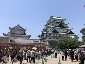 名古屋城天守閣と本丸御殿(将軍専用の宿館)・・・ゴールデンウイーク中とあって見学待ち時間に4~50分かかるとの事で諦めました。