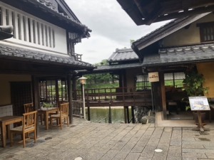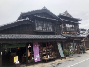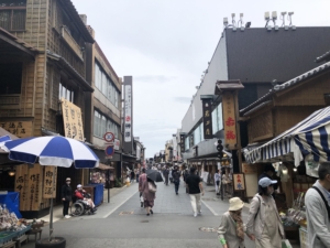 中間位に江戸時代にタイムスリップした町並みのおかげ横丁がありみやげもの・食べ物・日本の神話をテーマにした体験施設・劇場などが有りました。 以前買って食べたコロッケや真珠店もいまだに営業しており懐かしく見学しました。