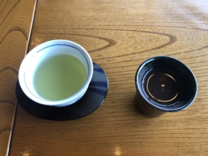 ロビーで休んでいたらお茶と甘いぜんざいのサービスがありました。