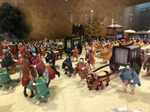 ペッパー君のお出迎えと江戸時代の様子をミニチュアの人形で作成されていました。