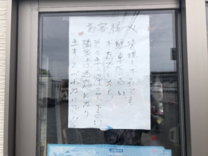 文章の内容・・・【お客様へ 管理人不在でも駐車ください。 不在でしたらそのまま帰ってください。 隣家には迷惑になります。 たづねないで!!】