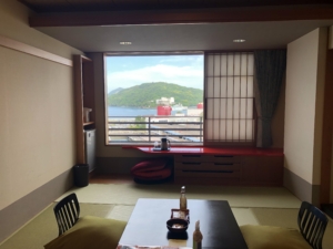 ロビーで休んでいたらお茶と甘いぜんざいのサービスがありました。