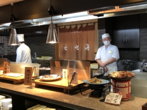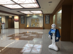 ペッパー君のお出迎えと江戸時代の様子をミニチュアの人形で作成されていました。