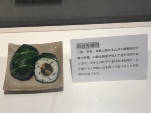 熊野古道センターにあったサンプル(右)とお魚市場で買った目はり寿司(左)