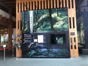 その後、明日からの野村古道巡りの勉強に三重県立熊野古道センターに行きました。 センター熊野古道「伊勢路」の世界遺産登録を記念して三重県が、古道を訪れる人々に熊野古道や古道周辺地域の情報を提供し、地域の人々の交流、ひいては地域の振興を図るために建設された施設との事でした。施設は奇麗で資料や熊野古道を紹介する映像がとても素晴らしかったです。
