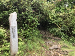 天候も回復ししてきたので熊野古道で最も人気の高い「馬越峠」コースを歩くことにしました。見所は何といっても、尾鷲ヒノキの美林と、古を今に伝える石畳など片道約5㎞ 約2時間30分の予定で尾鷲駅を9時30分に出発。 尾鷲神社近くの参道入り口から入山して歩いていたら数人の地元の方から「これからですか? がんばってください」と言われて張り切って登りました。