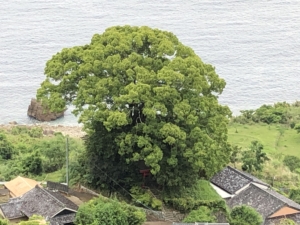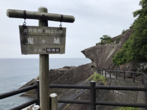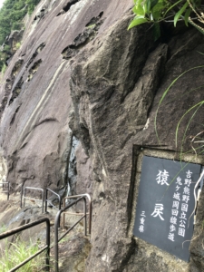 獅子岩から少し離れたところに世界遺産の花窟神社(はなのいわやじんじゃ)がありました。 花窟神社はは太古の自然崇拝の姿を今に残す日本最古の神社と言われており、国や神を生んだイザナミノミコトが葬られたとされ、黄泉の国と接する場所でパワースポットとして有名です。 高さ約70mの巨岩がここの御神体で社殿はありません。 2月と10月には古式ゆかしい行事がるそうです。