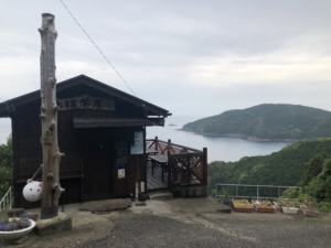 徐福は紀元前3世紀の中国・秦の始皇帝に仕えた方士で熊野に上陸したと伝えられ、徐福を祀る宮と展望台にある喫茶店。