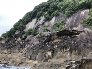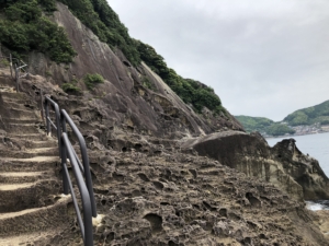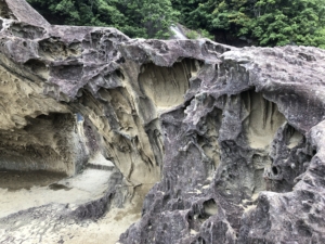 太平洋の荒波による浸食や長年の風化によってできた奇岩があちこちに点在していました