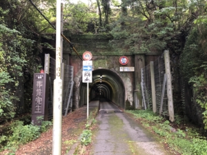 半分が歩道で半分が一方通行の車道になっいる延長509mの鬼ケ城歩道トンネル