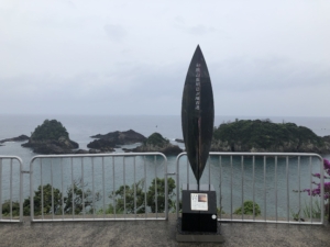 天候も良くないので取り合えず白浜温泉に向かうことにしました。 白浜温泉、もしくは南紀白浜温泉はかつて熱海温泉、別府温泉と並んで「日本三大温泉♨️」と言われていました。 温泉としても非常に歴史が古く、日本三古湯の一つに数えられていて、古い文献には牟婁の湯と呼ばれていました。 我々もその由来の日帰り温泉をネットで見つけ行って駐車しようとしたら、その湯の女将さんかどうかわかりませんが「白浜市民のみ入浴可能で絶対ダメ」と言って怒ってカギをかけてしまいました。 我々も何が何だか分からずその場を立ち去り他の温泉に行きました。 次の日に前を通たら色々な県の車が駐車して入浴しているようでした。 本当に残念で腹が立ちましたが何かの事情があったかも⁇と思い忘れる事にしました。 国道42号線北上中に見つけた看板(恋人岬夫婦波観潮)と書いてあったので駐車してみました。 その場では何の意味か分かりません❓でしたネットで調べてみると、太平洋から押し寄せてくる波が手前の「陸の黒島」で二つに分かれ再び陸地と島の中間で波がめぐり逢い手を合わせている夫婦に似ていることからこの名前が付けられたそうです。 納得しました😱😱😱。