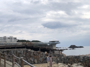 白崎海洋公園は和歌山県沿岸部のほぼ中央に位置し、道の駅としては珍しい白い石灰岩に囲まれている岬で、ダイビングやマリンスポーツができる施設やオートキャンプ場がありました。 古くから万葉集にも詠まれたその絶景は「日本夕日百選」や「なぎさ百選」にも選ばれており、展望台から見る景色はとても素晴らしかったです。