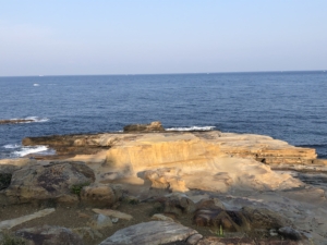 その後今夜の車中泊予定の千畳敷駐車場に向かいました。 夕方でしたが沢山の観光客で一杯でした。 千畳敷は瀬戸崎の先端から太平洋に向けて突き出したスロープ状になった白く柔らかい大岩盤で打ち寄せる太平洋の荒波に浸食された壮大な景観は息を呑むほどの絶景でした。 また夜には千畳敷から遠くを航行する貨物船⛴️・近くで漁をする漁船🛥️の光がとても奇麗で幻想的でした。