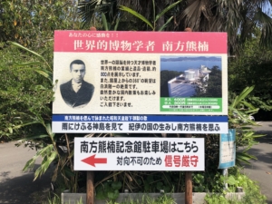 公園内には民俗学、生物学、生態学の名高い学者 南方熊楠の遺品や作品が展示されている記念館がありました。 また、公園の先の磯瀬には沢山の釣り客が釣りをして楽しんでいました。