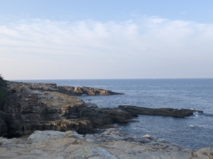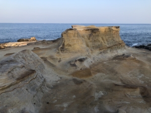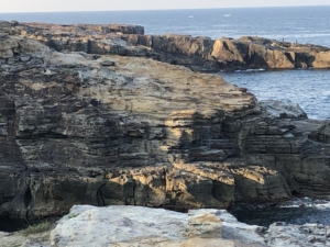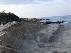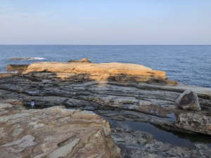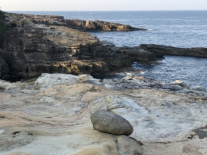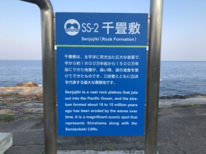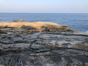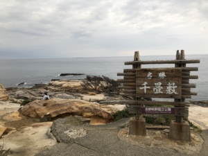 その後今夜の車中泊予定の千畳敷駐車場に向かいました。 夕方でしたが沢山の観光客で一杯でした。 千畳敷は瀬戸崎の先端から太平洋に向けて突き出したスロープ状になった白く柔らかい大岩盤で打ち寄せる太平洋の荒波に浸食された壮大な景観は息を呑むほどの絶景でした。 また夜には千畳敷から遠くを航行する貨物船⛴️・近くで漁をする漁船🛥️の光がとても奇麗で幻想的でした。