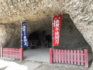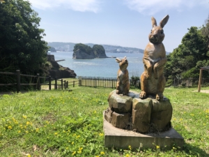 番所山公園に入る所に海水で浸食された洞窟の場所に不動明王の祠がありました。 また公園内には色々な動物のオブジェが立っており、そのユニークな姿に疲れも取れました。