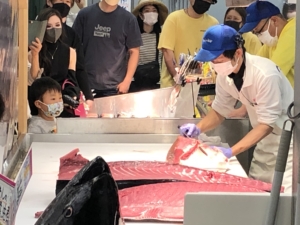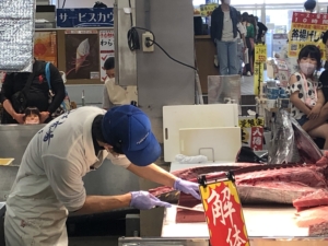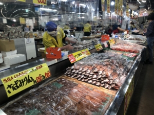 南紀白浜の帰りに「とれとれ市場」に寄りました。 西日本で最大級の海鮮マーケットを中心に温泉、レストラン、和歌山の特産品の土産などなど・・・なんでも揃う施設でした。 ここでもめはり寿司が売っていたので1パック買って4度目のめはり寿司の試食をしました。 味は様々で妻曰く2度目に食べためはり寿司が一番おいしかったそうです。