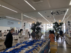 海鮮せんべい製造元の工場見学があったので立ち寄り、色々な海鮮せんべいの試食とアイスクリーム・コーヒーを飲んで大満足でした。