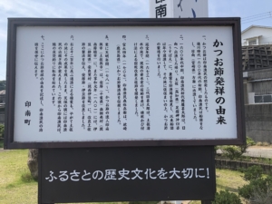 かつお節発祥の地とあったので寄ってみましたがかつお節は無く、地元の特産品を販売していました。