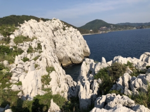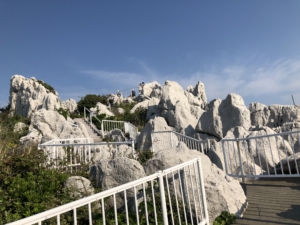 白崎海洋公園は和歌山県沿岸部のほぼ中央に位置し、道の駅としては珍しい白い石灰岩に囲まれている岬で、ダイビングやマリンスポーツができる施設やオートキャンプ場がありました。 古くから万葉集にも詠まれたその絶景は「日本夕日百選」や「なぎさ百選」にも選ばれており、展望台から見る景色はとても素晴らしかったです。