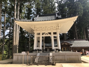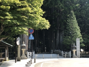 弘法大師(空海)が高野山を開創した際に、母公・玉依御前が滞在した慈尊院に、必ず9度は下山したことから「九度山」なずけられました。 慈尊院から始まる高野山への道は、高野七口とよばれる七つの参詣道の主要道となり高野参詣道町石道と言われます。 慈尊院から高野山まで180本の町石が建てられており1町約109mの距離との事でした。 我々の車は大きいのでこの道をたどる事が出来ないので、かつらぎ町まで降りて国道480号線で高野山に上ることにしました。 車🚙が少ない朝早に出発、約1時間かけて高野山の大門を通り抜け奥の院前の駐車場に到着。 もうすでに修学旅行のバスが沢山来ておりました。
