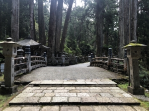 御廟橋から見た奥之院弘法大師御廟・・ここからは先は写真NGでした。 御廟のほかに藤原道長によって建立された灯籠堂があり、その正面には1000年近く燃え続けている二つの消えずの火がありました。 その一つが祈親上人が献じた「祈親燈」、もう一つは白河上皇が献じた「白河燈」といいます。