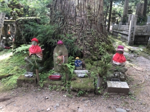 奥之院 弘法大師御廟は大師信仰の中心聖地で参道入り口一の橋から御廟まで約2キロの参道の両脇には何百年も経った老杉が高くそびえ、もとには二十万基を超える墓碑が並んでありました。 墓碑には戦国時代の名将から各地の大名・現代では大手の会社名が連ねて有り、その力量を比べているようでとても興味深っかった。