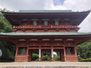 大門は高野山の総門で、現在の建物は宝永2年(1705)に再建されたもので高さ25.8m、両脇の金剛力士像は江戸時代の仏師康意(阿形像)運長(吽形像)作によるものです。
